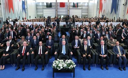 Türk savunma sanayisinin gelişiminin önemine değinen Erdoğan, "Savunma sanayimizin gelişmesi için canla başla çalışan herkese şükranlarımı sunuyorum. Geçen sene TUSAŞ tesislerine yapılan saldırıda şehit olanları rahmetle anıyorum" dedi.