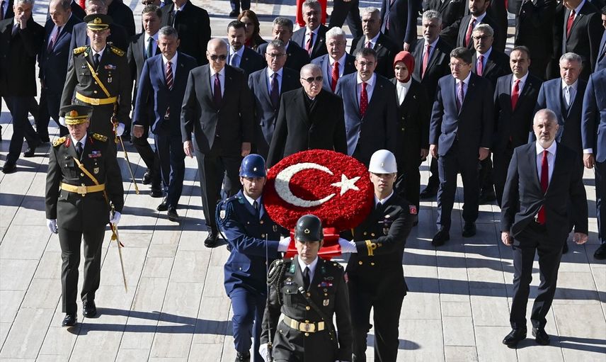 Cumhurbaşkanı Recep Tayyip Erdoğan başkanlığındaki devlet erkanı, 29 Ekim Cumhuriyet Bayramı dolayısıyla Anıtkabir'i ziyaret etti. Cumhurbaşkanı Erdoğan'ın başkanlığındaki Aslanlı Yol'daki kortejde, Türkiye Büyük Millet Meclisi Başkanı Numan Kurtulmuş, Cumhurbaşkanı Yardımcısı Cevdet Yılmaz, CHP Genel Başkanı Özgür Özel, İYİ Parti Genel Başkanı Müsavat Dervişoğlu, Cumhurbaşkanlığı Kabinesi üyeleri, yüksek yargı organlarının başkanları, Genelkurmay Başkanı Orgeneral Selçuk Bayraktaroğlu, kuvvet komutanları, siyasi partilerin temsilcileri ve diğer devlet erkanı yer aldı.
