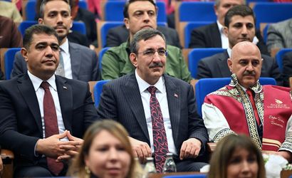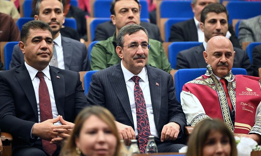 Düzce Üniversitesi 2025-2026 Akademik Yılı açılış etkinliğinde, Cumhurbaşkanı Yardımcısı Cevdet Yılmaz'a "fahri profesörlük" unvanı takdim edildi.