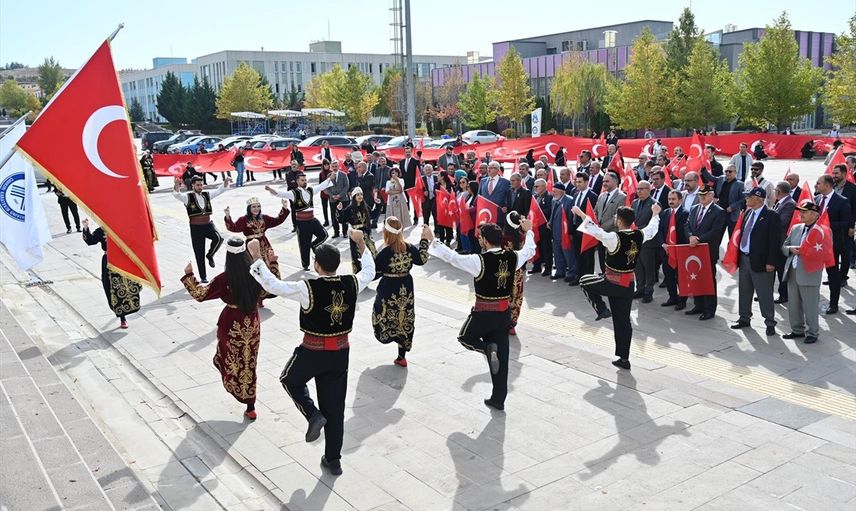 Karataş, Cumhuriyet'in Türk milletinin özgür iradesinin ve bağımsızlık kararlılığının en değerli sembolü olduğunu belirterek, "Çankırı Karatekin Üniversitesi olarak bilimin yol göstericiliğinde ve akademik özgürlüğün ışığında Cumhuriyetimizin değerlerini yaşatma ve geliştirme sorumluluğunu taşıyoruz," dedi.