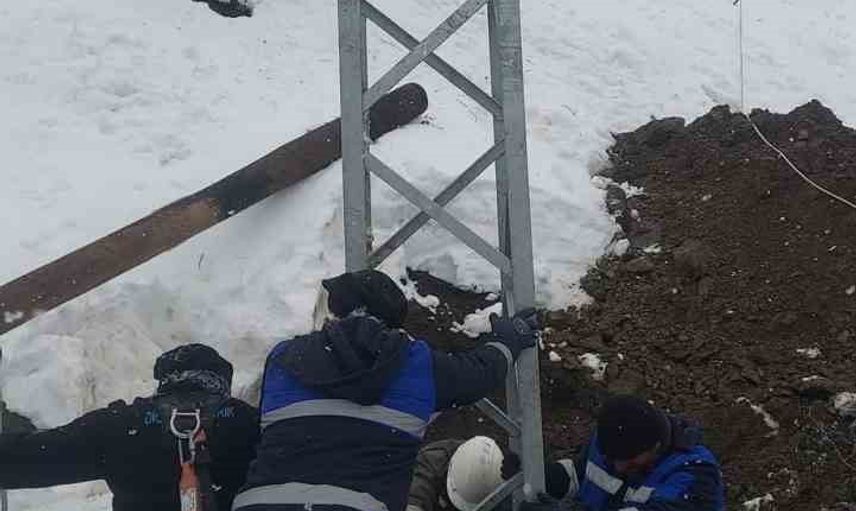 Çüngüş'te kar nedeniyle devrilen elektrik direkleri onarıldı
