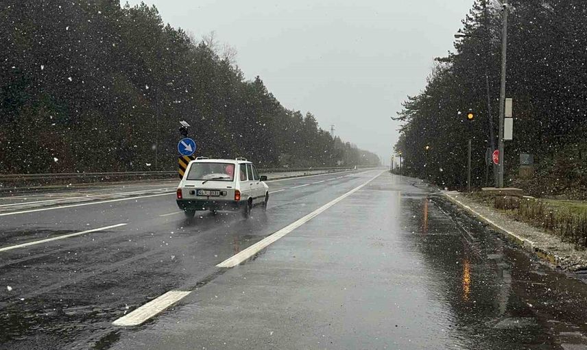 D-100'nin Bolu Dağı Geçidinde Kar Yağışı Etkili