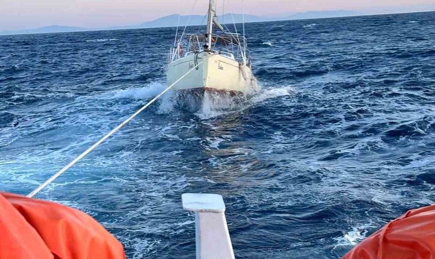 Datça açıklarında sürüklenen yelkenli kurtarıldı