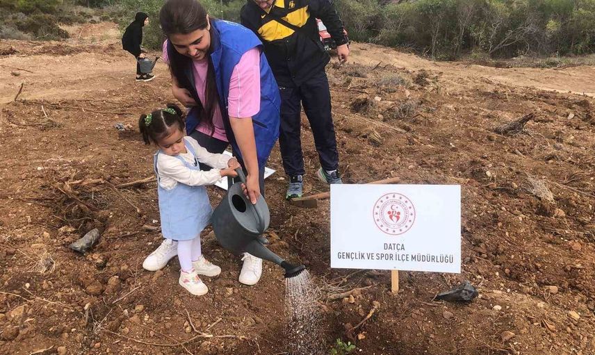 Muğla'nın Datça ilçesinde, 11 Kasım Milli Ağaçlandırma Günü dolayısıyla düzenlenen etkinlikte yüzlerce fidan toprakla buluşturuldu.