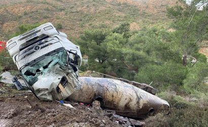 MUĞLA'NIN DATÇA İLÇESİNDE VİRAJI ALAMAYAN TIRIN DEVRİLMESİ SONUCU MEYDANA GELEN TRAFİK KAZASINDA 1 KİŞİ YARALANDI.