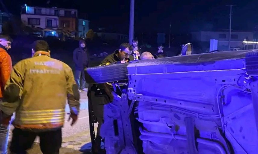 HATAY’IN DEFNE İLÇESİNDE VİDANJÖR ARACINA ÇARPAN OTOMOBİLİN DEVRİLDİĞİ KAZADA SÜRÜCÜ HAFİF YARALANDI.