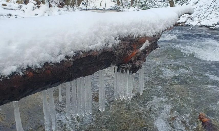 Dere yatağında devrilmiş ağaçların üzerinde biriken kar tabakaları ve sarkıt biçiminde oluşan buzlar, doğanın kış mevsimindeki estetiğini gözler önüne serdi. Suyun akışıyla şekillenen donmuş detaylar, tabloyu andıran sahneler ortaya çıkardı.