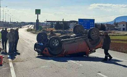 Çivril ilçesi Denizli karayolunda seyir halindeki 20 AGP 462 plakalı pikap, sürücünün direksiyon hakimiyetini kaybetmesi sonucu refüje çarparak takla attı.