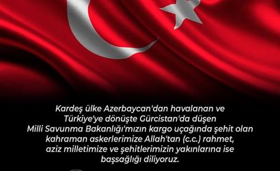 Erdoğan mesajında, "Kardeş ülke Azerbaycan’dan havalanan ve Türkiye’ye dönüşte Gürcistan’da düşen Milli Savunma Bakanlığı’mızın kargo uçağında şehit olan kahraman askerlerimize Allah’tan rahmet, aziz milletimize ve şehitlerimizin yakınlarına ise başsağlığı diliyoruz" ifadelerine yer verdi.