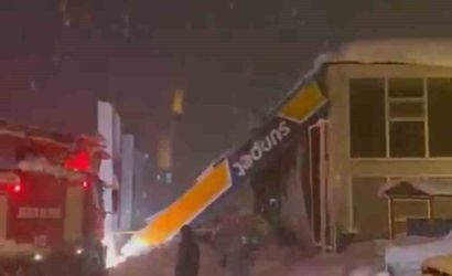 HAKKARİ'NİN DERECİK İLÇESİNDE YOĞUN KAR YAĞIŞI NEDENİYLE BİR AKARYAKIT İSTASYONUNUN ÇATISININ ÇÖKMESİ SONUCU 7 KİŞİ YARALANDI.