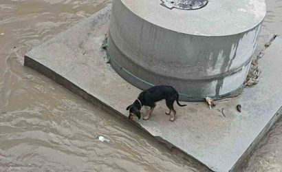 Karabağlar'da dereye düşen köpek itfaiye tarafından kurtarıldı