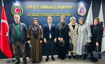 Diyarbakır’ın Dicle İlçe Devlet Hastanesinde görevli kadın çalışanlar, HAK-İŞ İl Başkanı ve Öz Sağlık İş Şube Başkanı Mehmet Aküzüm’ü ziyaret ederek yoğun çalışmalarında başarı ve kolaylık dileklerini iletti.
