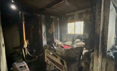 Yangın nedeniyle prefabrik ev kullanılamaz hale gelirken, olayla ilgili inceleme başlatıldı.