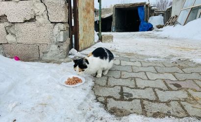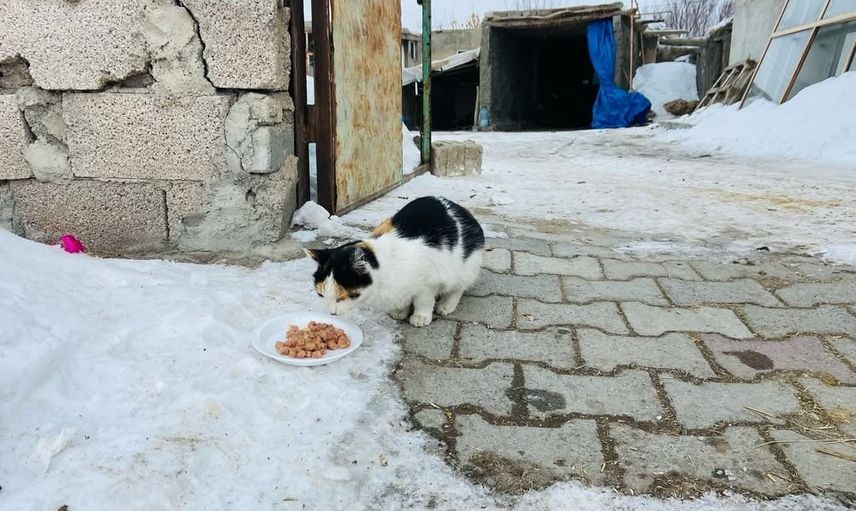 Diyadin’de gençlerin sokak hayvanlarına mama desteği