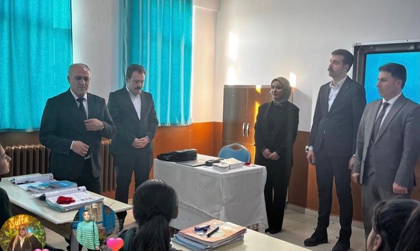 AĞRI'NIN DİYADİN İLÇESİNDE, İLÇE MİLLÎ EĞİTİM MÜDÜRÜ REMZİ IŞIK, ŞUBE MÜDÜRLERİ MEHMET NURULLAH İNANÇ VE UĞUR ADIGÜZEL İLE BİRLİKTE DİYADİN İMAM HATİP ORTAOKULU'NU ZİYARET ETTİ.