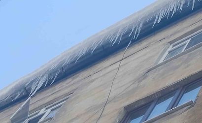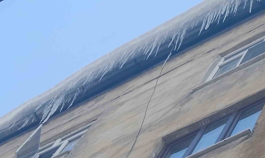 Binadan sarkan, ok gibi sivri buz sarkıtları çevrede bulunanlar için tehlike oluşturuyor. Buzların düşme riski nedeniyle vatandaşlar endişe duyuyor.