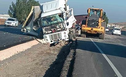 Yuvacık Mahallesi'nde iki tır ile bir otomobilin karıştığı kaza meydana geldi