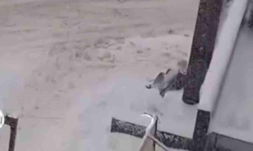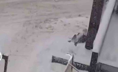 Bir cep telefonu kamerasına yansıyan görüntülerde, yaşlı bir kadının kar üzerinde oturup araç beklediği anlar kaydedildi.