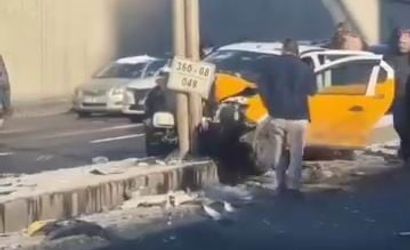 Alt geçitte aydınlatma direğine çarpan takside 1 kişi yaralandı