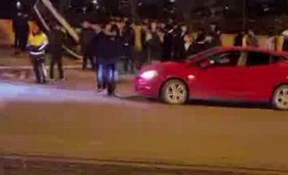 Çarpışmanın etkisiyle araçlardan biri kaldırımdaki direklere çarparak durabildi.