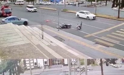 Kaza anları güvenlik kameralarına yansırken, polis ekipleri olayla ilgili inceleme başlattı.