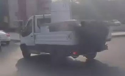 Görüntülerde çocukların bir süre pikabın arkasında can güvenliğini tehlikeye atarak ilerlediği, ardından aracın ve çocukların gözden kaybolduğu görülüyor. O anlar cep telefonu kamerasına yansıdı.
