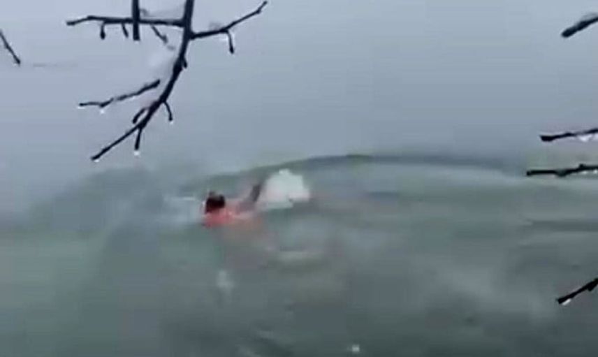O anlar çevrede bulunan bir kişi tarafından cep telefonuyla kayda alındı. Görüntülerde kar yağışı altında nehirde yüzmenin ve uzun süre su üzerinde kalmanın görüntüleri yer alıyor.