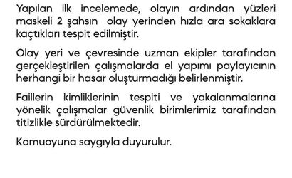 Olay yerinde ve çevresinde yürütülen incelemeler ile failleri tespit etmeye yönelik çalışmalar güvenlik birimleri tarafından sürdürülüyor.