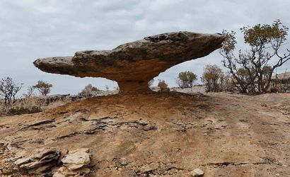 İnce bir sütun üzerinde dengelenen geniş kaya, bölgenin jeolojik tarihini gözler önüne seriyor