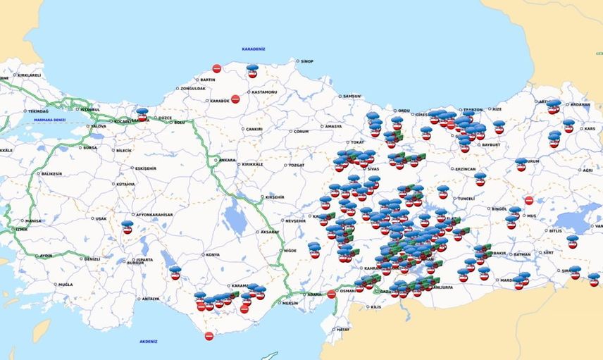 Onlarca karayolu araç trafiğe kapandı. Yollarda mahsur kalan sürücüler ve yolcular, yurtlar ve çeşitli tesislerde misafir edildi.