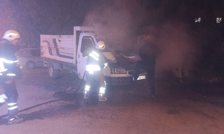 Son durum: Yangında can kaybı veya yaralanma yaşanmadı; soğutma çalışmaları gerçekleştirilen pikapta hasar oluştu.