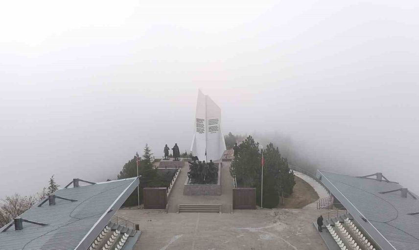 Polatlı’da sabah saatlerinden itibaren etkili olan sis, anıta eşsiz bir atmosfer kazandırdı