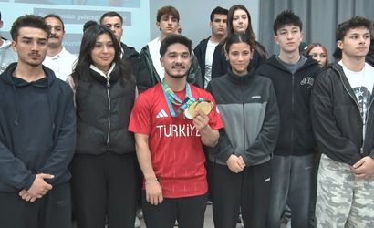 Özbek, 65 kilogram sıkletinde toplam 324 kilogram kaldırarak kırdığı dünya rekoru ve 2025 yılında elde ettiği Büyükler Dünya Şampiyonluğu'nu öğrencilerle paylaştı. Başarı yolculuğunu ve bu süreçte edindiği tecrübeleri anlatırken, şampiyonluk anlarına ait video kayıtları da dinleyicilerle izlendi.