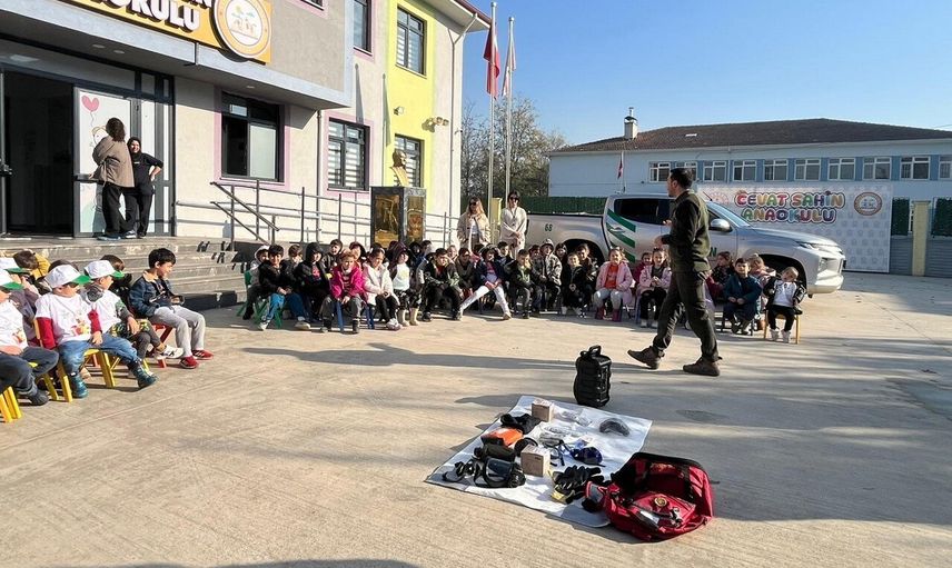 Düzce Cevat Şahin Anaokulu 4-6 yaş grubundaki öğrencileri, Düzce Orman İşletme Müdürlüğü yangın ekibiyle bir araya gelerek ormanların korunması ve orman yangınlarını önleme konusunda bilgilendirildi. Eğitimde çocuklara ormanlara nasıl sahip çıkılması gerektiği ve yangın riski oluştuğunda alınacak temel önlemler sade ve anlaşılır bir dille aktarıldı.
