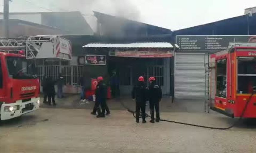 Düzce'de pazar günü eski sanayi sitesinde gezen bir kişi, kapalı bir iş yerinden siyah dumanların çıktığını fark etti. Kapıların kapalı olduğunu gören vatandaş, durumu Düzce Belediyesi İtfaiye Müdürlüğü'ne bildirdi ve ekiplerin harekete geçmesini sağladı.