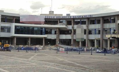 Düzce Belediyesi tarafından Cedidiye Meydan Projesi kapsamında boşaltılarak yıkımına başlanan eski belediye binasında yangın çıktı. Binanın yıkımını üstlenen özel firma ekipleri, iç mekanda devam eden söküm çalışmaları sırasında demir aksamı keserken spiral taşı kullanımından çıkan kıvılcımlar nedeniyle binada bulunan yalıtım köpüğünde tutuşma meydana geldi.
