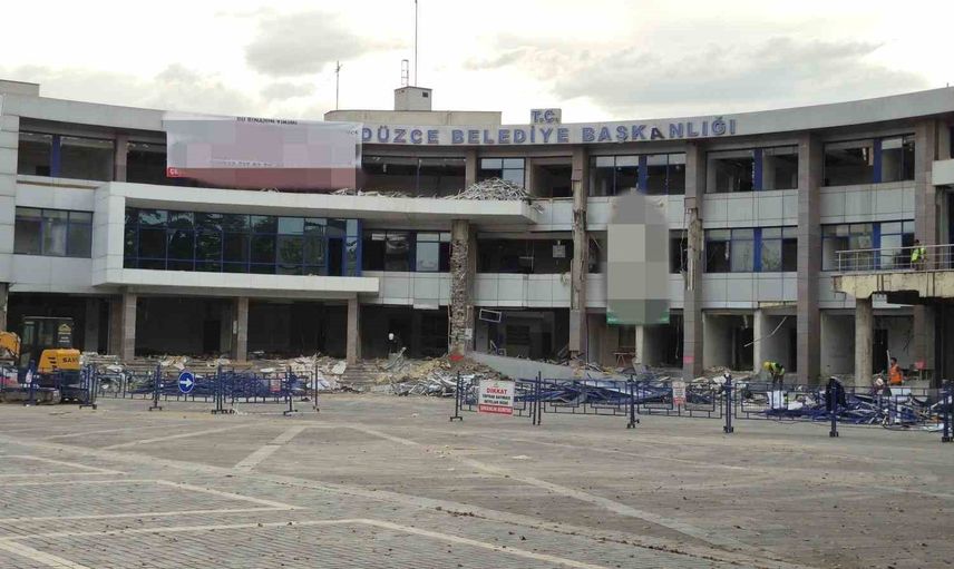 Düzce'de yıkım çalışması yapılan belediye binasında yangın