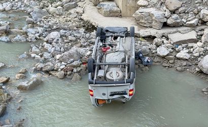 Düzce'de hafif ticari aracın dereye devrilmesi sonucu 2'si çocuk 5 kişi yaralandı.