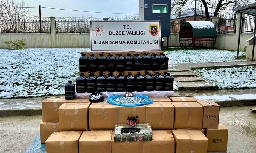 Jandarma ekipleri, Akçakoca'da C.K. isimli şüphelinin Düzce şehir merkezindeki deposunda kaçak ürünler sakladığını tespit etti. Depoda yapılan aramada, 51 koli içinde toplam 900 litre etil alkol ile alkol üretiminde kullanılmak üzere yaklaşık 2 bin 200 litre muadili malzemeye denk gelen bin 130 adet alkol üretim kiti ele geçirildi.
