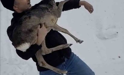 Kar yağışının etkili olduğu arazide dolaşan Musa Şahin, karların arasında yürüyen hayvanı fark etti. Yanına yaklaştığında hayvanın yaralı bir yavru karaca olduğunu gören Şahin, soğuktan etkilenmemesi için onu kucağına alıp güvenli bir noktaya taşıdı ve durumu yetkililere bildirdi.