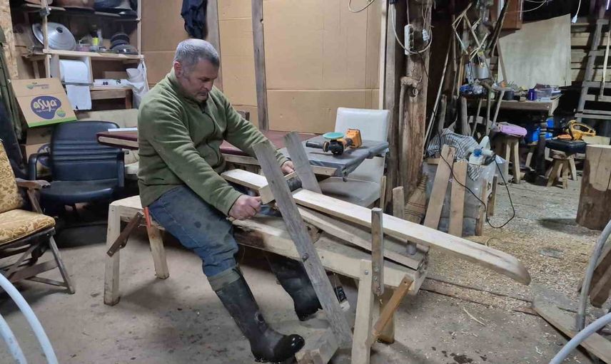 'Mevsimine göre karda kaymak için kayak takımları yapıyorum. Kırılan balta ve kazma saplarını yapıyorum. Dededen babadan gördüğüm öğrendiklerimi uyguladım. Daha önce sopalardan yapıyorduk. Bu kez tutma yerlerini PVC borulardan yaptım. Kayak takımlarını geçmişte fındık sopasından yapıyorduk. Kırılıyordu, çabucak deforme oluyordu. Bu sebeple PVC borularla yapmaya karar verdim. Bu daha güzel oldu. Elim daha iyi kavradı. Görüntüsü de güzel oldu. Bu şekilde eskiye yenilik katmış olduk.' dedi.