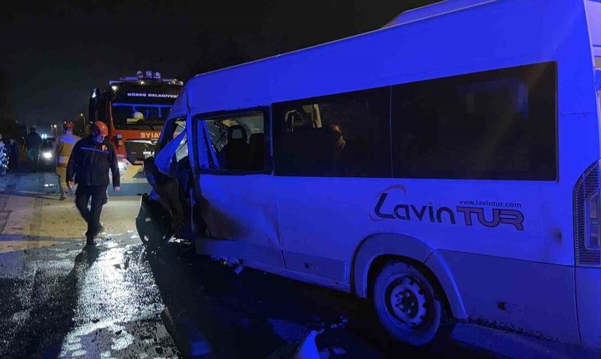 Düzce'de minibüs ile otomobil çarpıştı: 3 kişi yaralandı