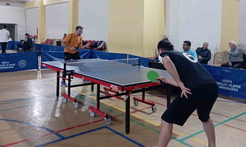 DÜZCE (İHA) – Bahçeşehir Spor Salonu'nda gerçekleşen Öğretmenler Günü Masa Tenisi Turnuvası, il genelinden gelen öğretmenler ve gönüllü sporcuların katılımıyla renkli ve çekişmeli maçlara sahne oldu. Organizasyon, sosyal dayanışma ve spor ruhunu bir arada yaşattı.