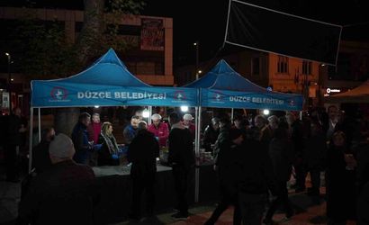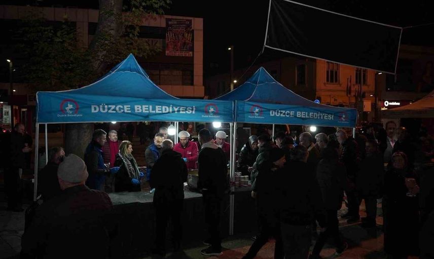 Düzce Belediyesi akşam namazının ardından vatandaşlara helva dağıttı