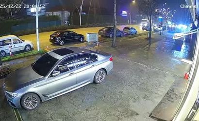 Bölgedeki bir iş yerinin güvenlik kamerası tarafından kaydedilen görüntülerde, taksinin manevra yaparak park halindeki araca çarpma anı yer alıyor.