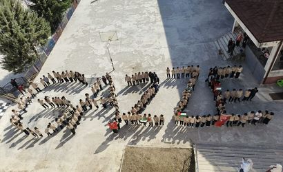 Düzce'nin Yığılca ilçesinde öğrenciler, Gazze'ye insani yardım ulaştırmak için yola çıkan ve İsrail'in saldırısına uğrayan Küresel Sumud Filosu'na "Gazze" koreografisiyle destek verdi.