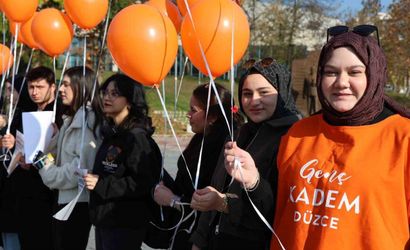 Düzce Üniversitesi öğrencileri, 25 Kasım Kadına Yönelik Şiddete Karşı Uluslararası Mücadele Günü kapsamında anlamlı bir etkinlik düzenledi. Düzce Üniversitesi 15 Temmuz Demokrasi Meydanı'nda bir araya gelen Genç KADEM Topluluğu üyeleri, kadına yönelik şiddete dikkat çekmek ve toplumda farkındalık oluşturmak amacıyla turuncu balonları gökyüzüne bıraktı.