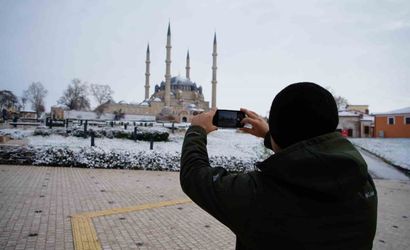 Edirnede akşam saatlerinde başlayan ve etkisini artıran kar yağışı, kentin tarihi mekanlarını beyaz bir örtüyle kapladı. UNESCO Dünya Kültür Mirası Listesinde yer alan Selimiye Camiinin kubbesi ve minareleri karla bütünleşerek ziyaretçilere kartpostallık görüntüler sundu. Çevredeki park ve bahçeler de beyaz manzaralar oluşturdu.