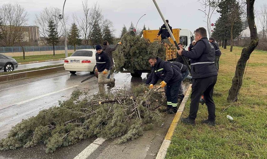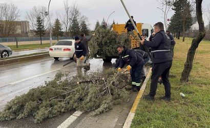 Belediye ekipleri kısa sürede müdahale ederek devrilen ağaçları kesip yoldan kaldırdı.