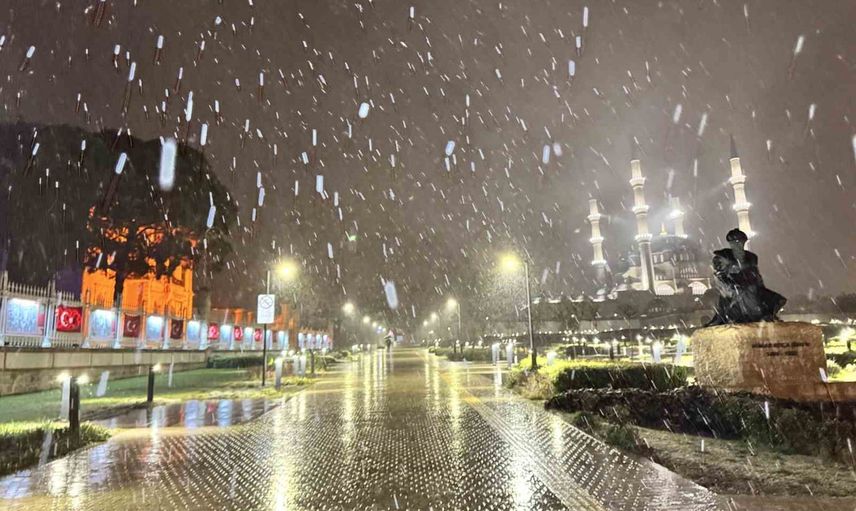 Edirne'de akşam üzeri hızlanan kar yağışı kentte etkisini hissettirdi. Tarihi mekânların üzerini örten kar taneleri, ortaya farklı ve dikkat çekici görüntüler çıkardı.